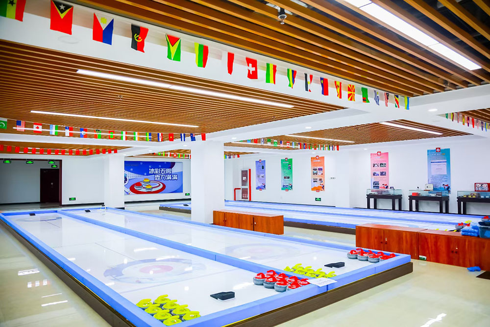馆内共有冰道5条,能同时容纳100名于此进行活动。同时,拥有专业的冰壶教练团队。馆内冰道采用纳米技术科技冰,冰面平整如镜,为冰壶滑行提供绝佳条件。